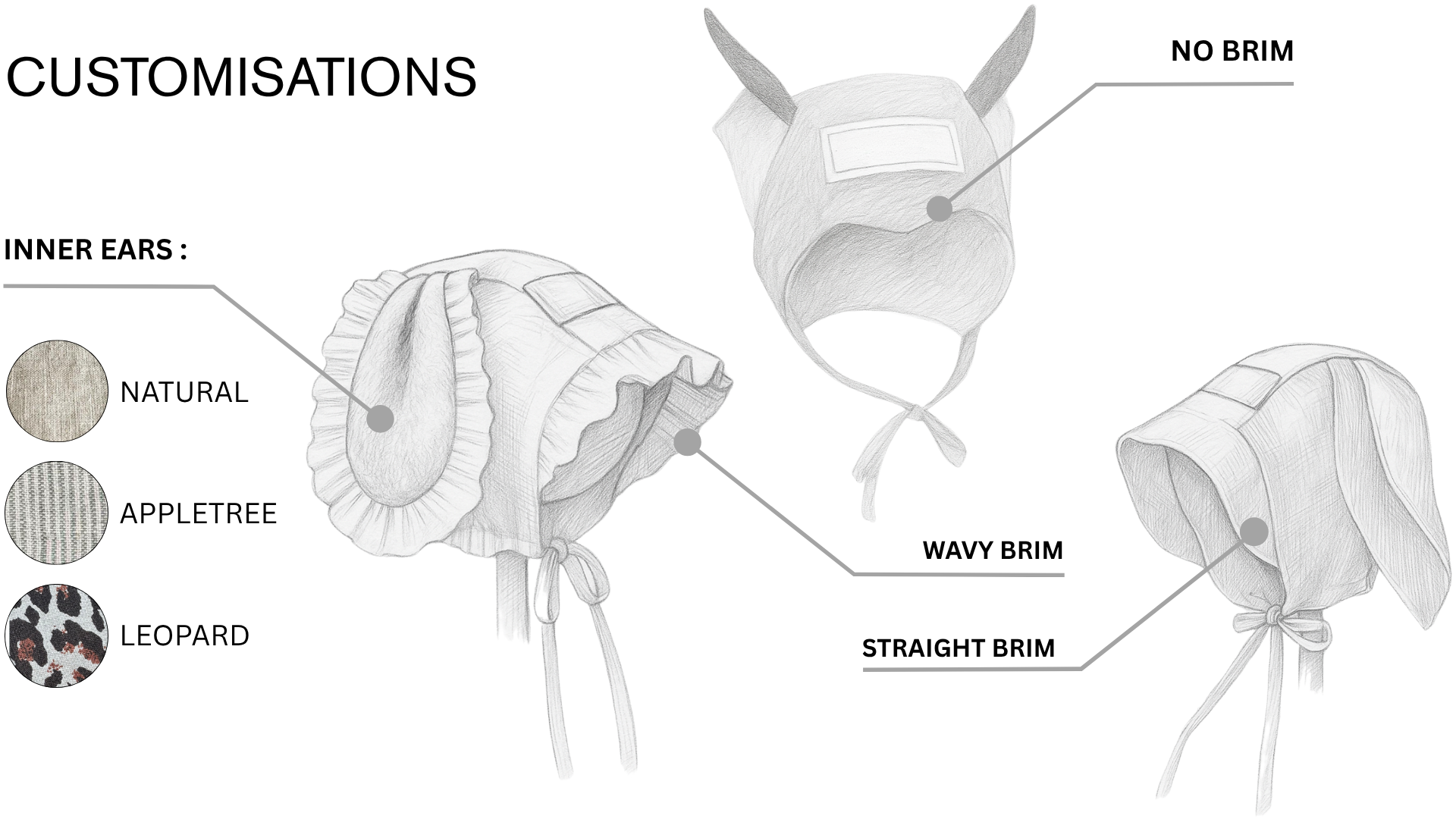 Secured with soft linen ties for a gentle, adjustable fit around the neck. Designed to stay in place and protect little ears from the wind.