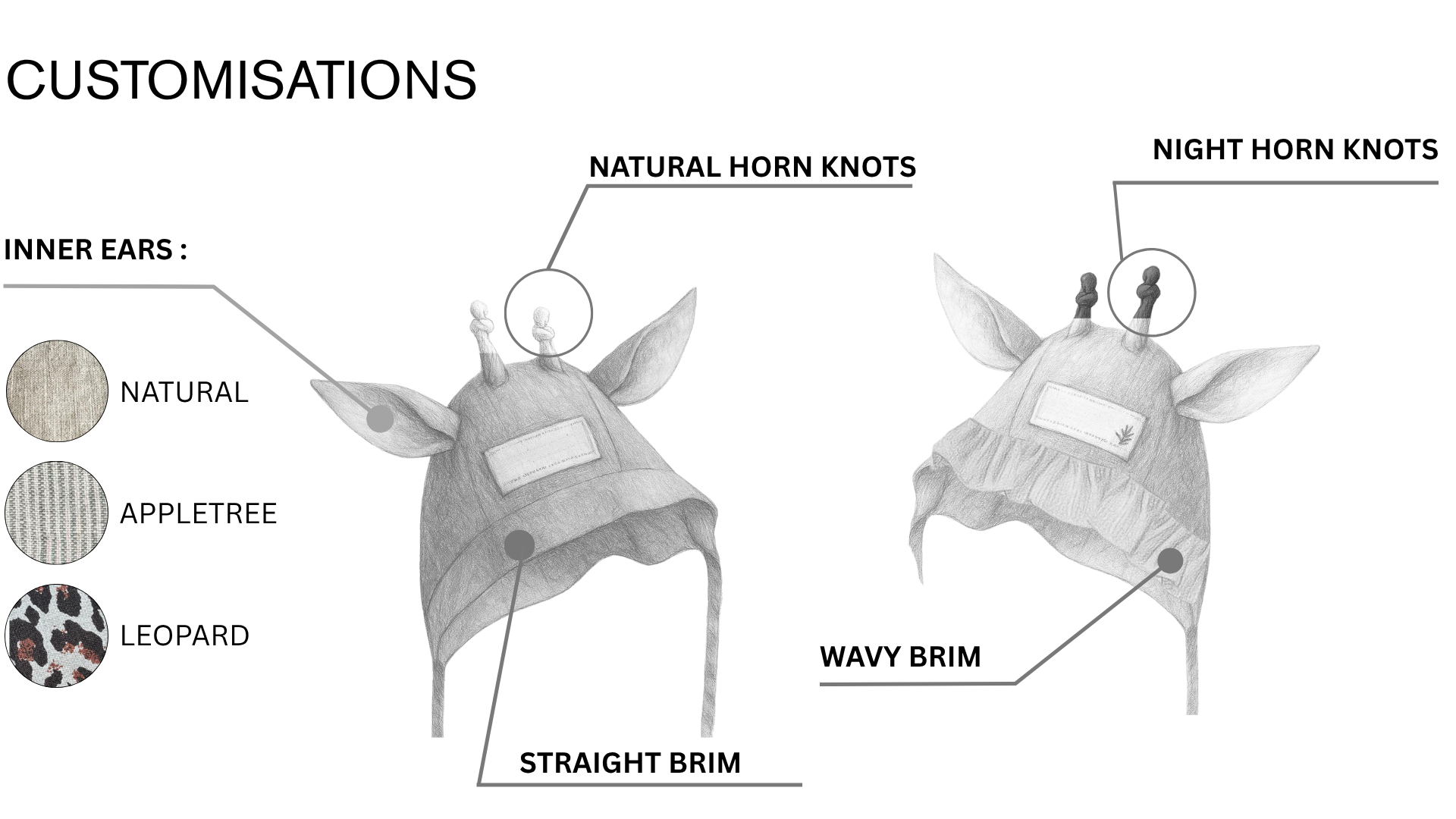 Secured with soft linen ties for a gentle, adjustable fit around the neck. Designed to stay in place and protect little ears from the wind.