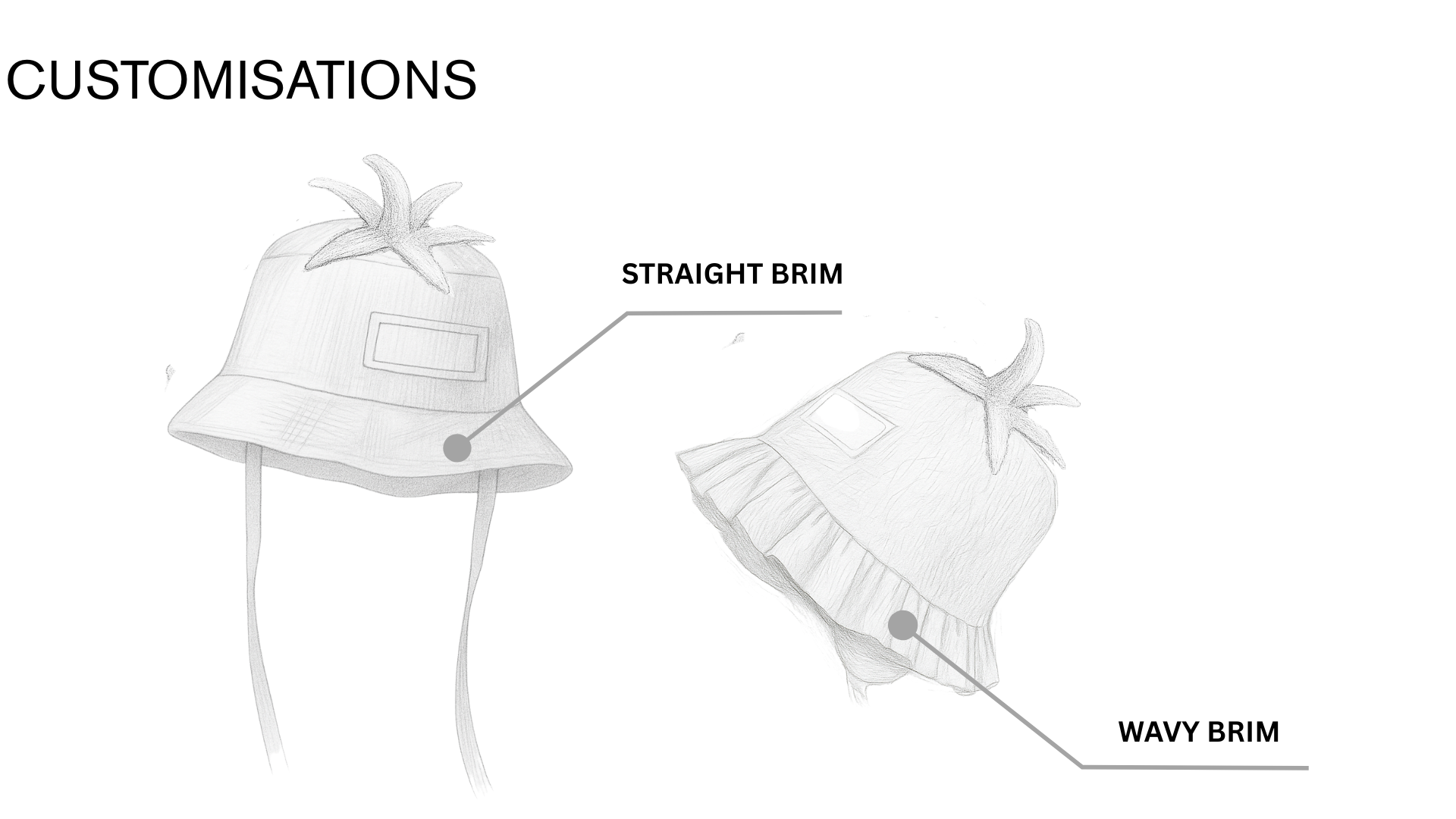 The hat comes with soft ties and built-in ear protectors for comfort and wind protection. Can be ordered without ties by selecting the option " No ear protectors and laces '. Brim can be sewn straight or wavy.